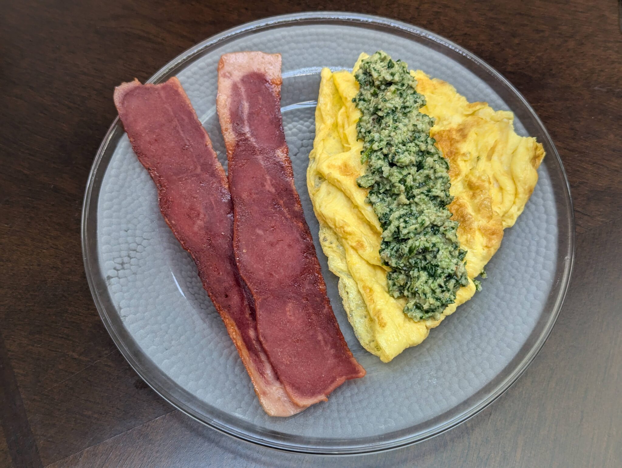 - Assemble & Serve spoon a generous swirl of garlic scape pesto into the warm scrambled eggs and fold to combine. Plate the eggs alongside turkey bacon and serve immediately.